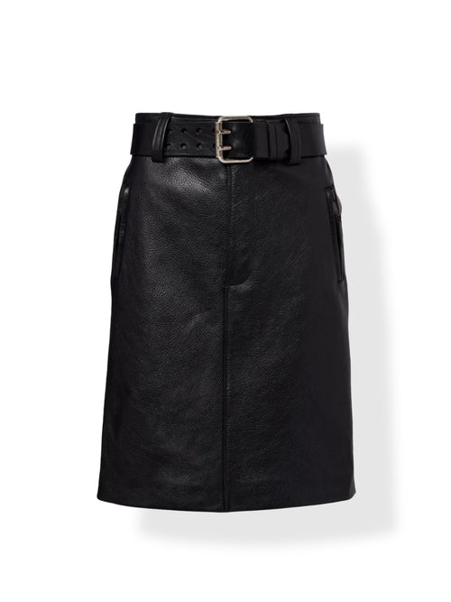 Black Leather Midi Pencil Skirt – High Waist Belted for Women